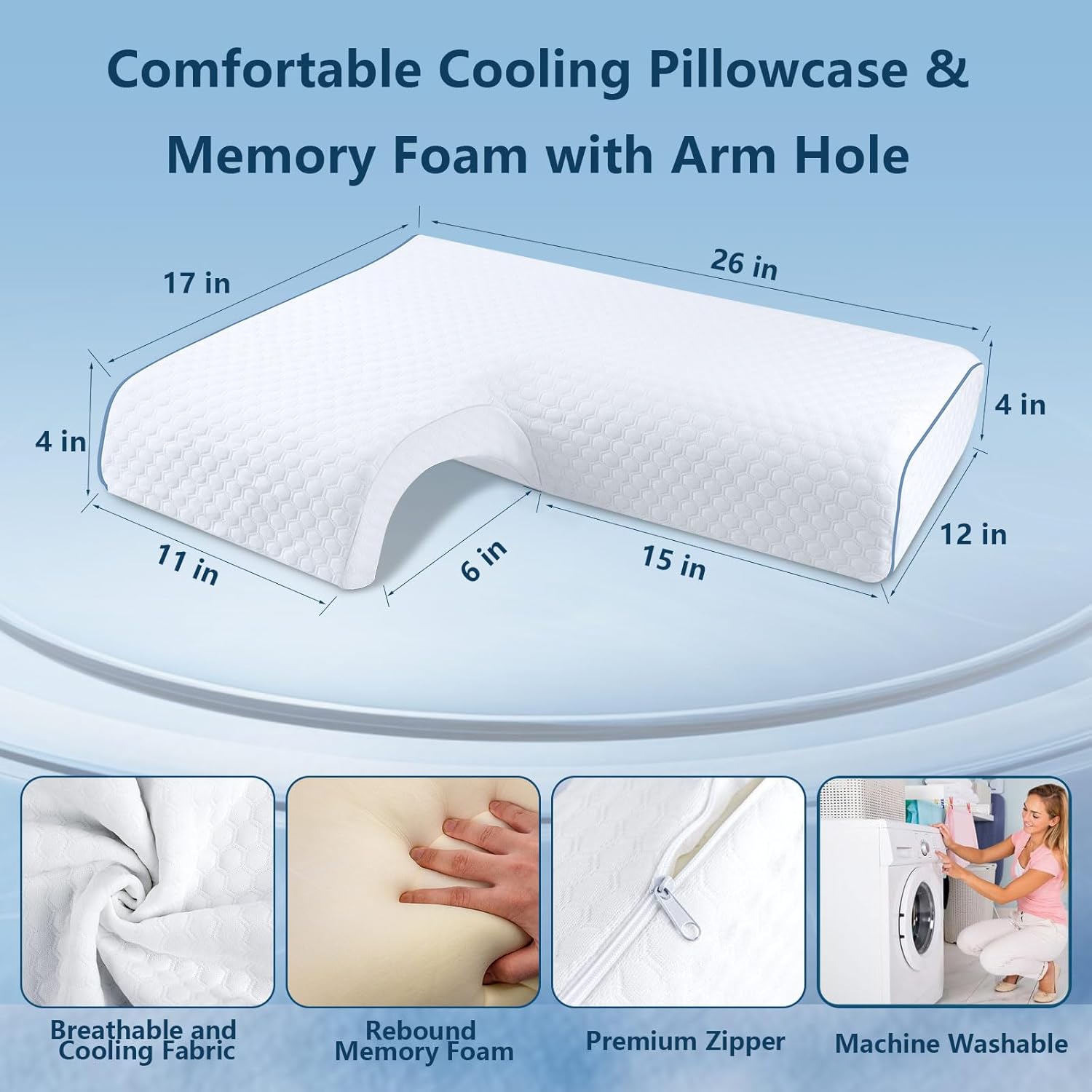 - Arco para soporte del cuello: la almohada de espuma viscoelástica de diseño arqueado proporciona un gran apoyo para el cuello y la cabeza de tu pareja, mientras que el diseño hueco deja espacio para tus brazos.