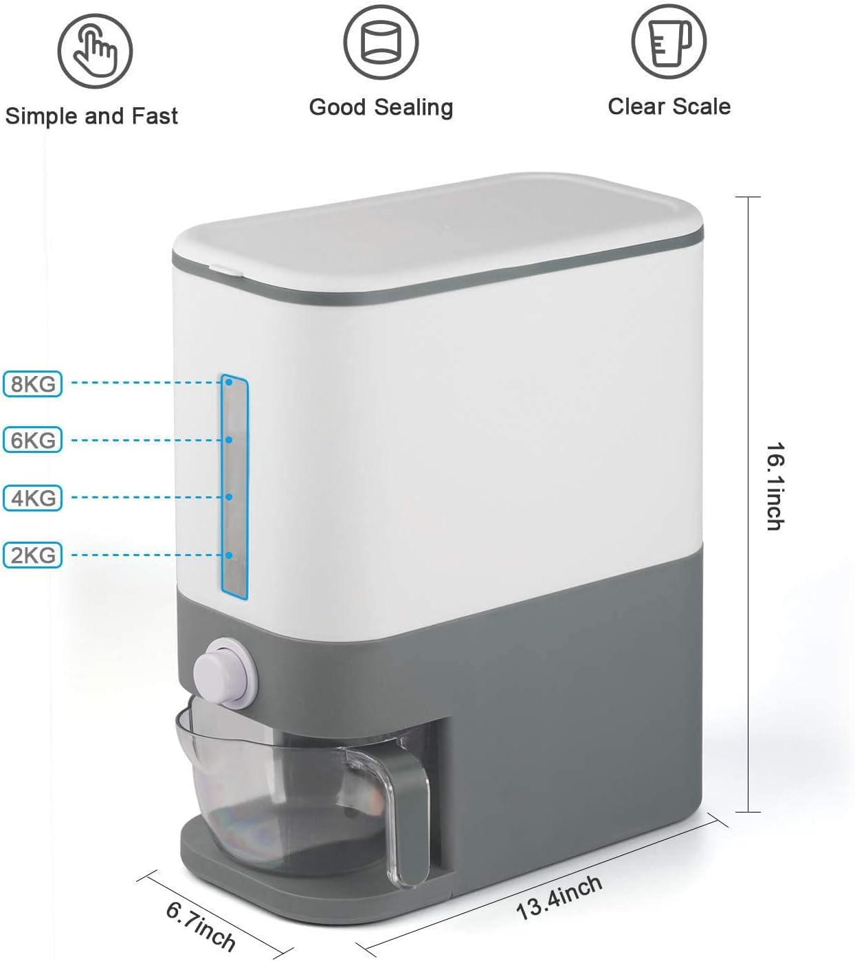 ¡Organiza tu cocina hoy mismo! Con nuestro dispensador de arroz de 22 libras, tendrás todo bajo control.